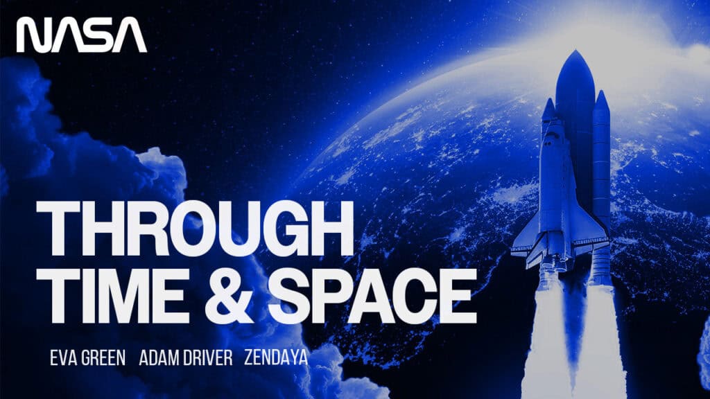 “Through Time & Space” is a concept for NASA’s premier sci-fi feature film starring Zendaya, Adam Driver, and Eva Green. Coming to theaters on May 8, the film follows three explorers traveling through wormholes and across galaxies in a search for a solution to their dying planet. But as time runs out, the secrets each character carries threaten to unravel their mission — and their survival.